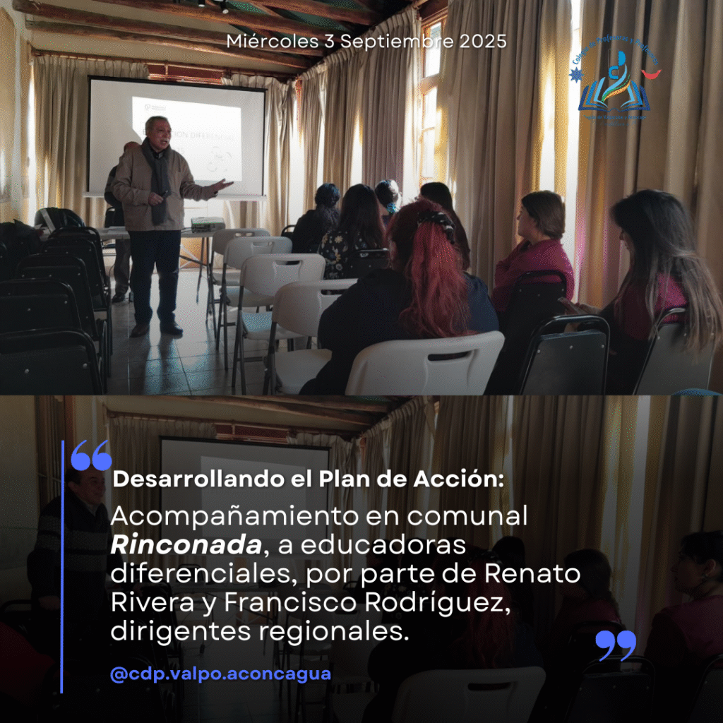 Acompañamiento en comunal Rinconada, a educadoras diferenciales, por parte de Renato Rivera y Francisco Rodríguez, dirigentes regionales.