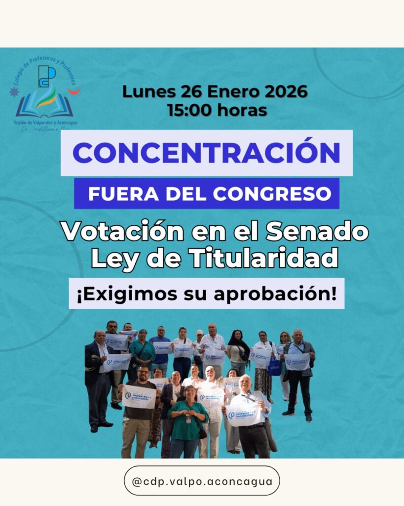 Las y los profesores nos encontraremos en el acceso del Congreso, para exigir aprobación de la titularidad en los términos presentados.