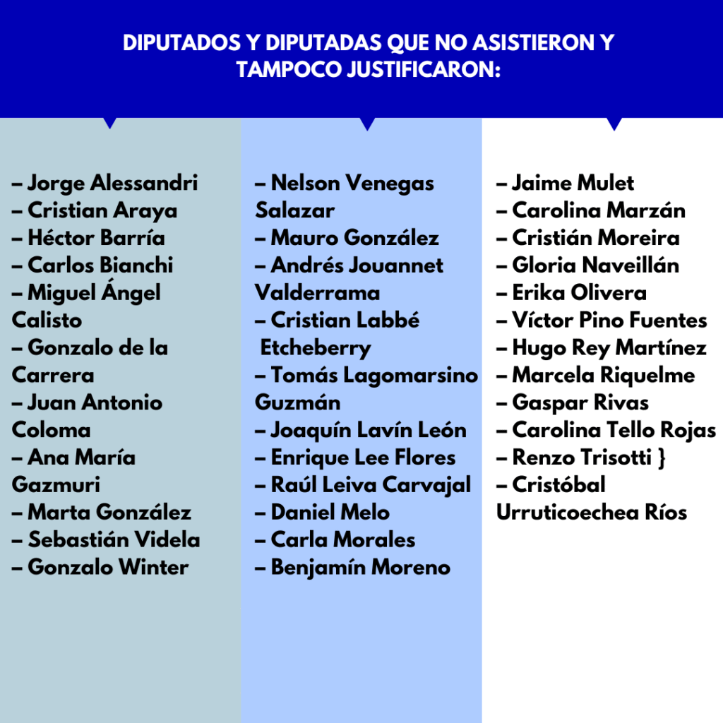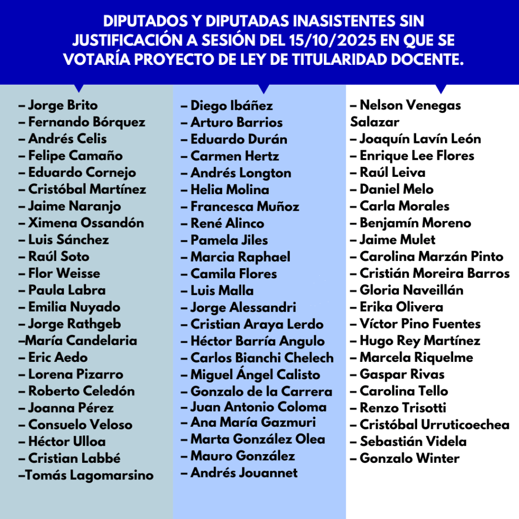 Listado de Diputados y diputadas inasistentes sin justificación a sesión del 15/10/2025 en que se votaría proyecto de ley de titularidad docente.