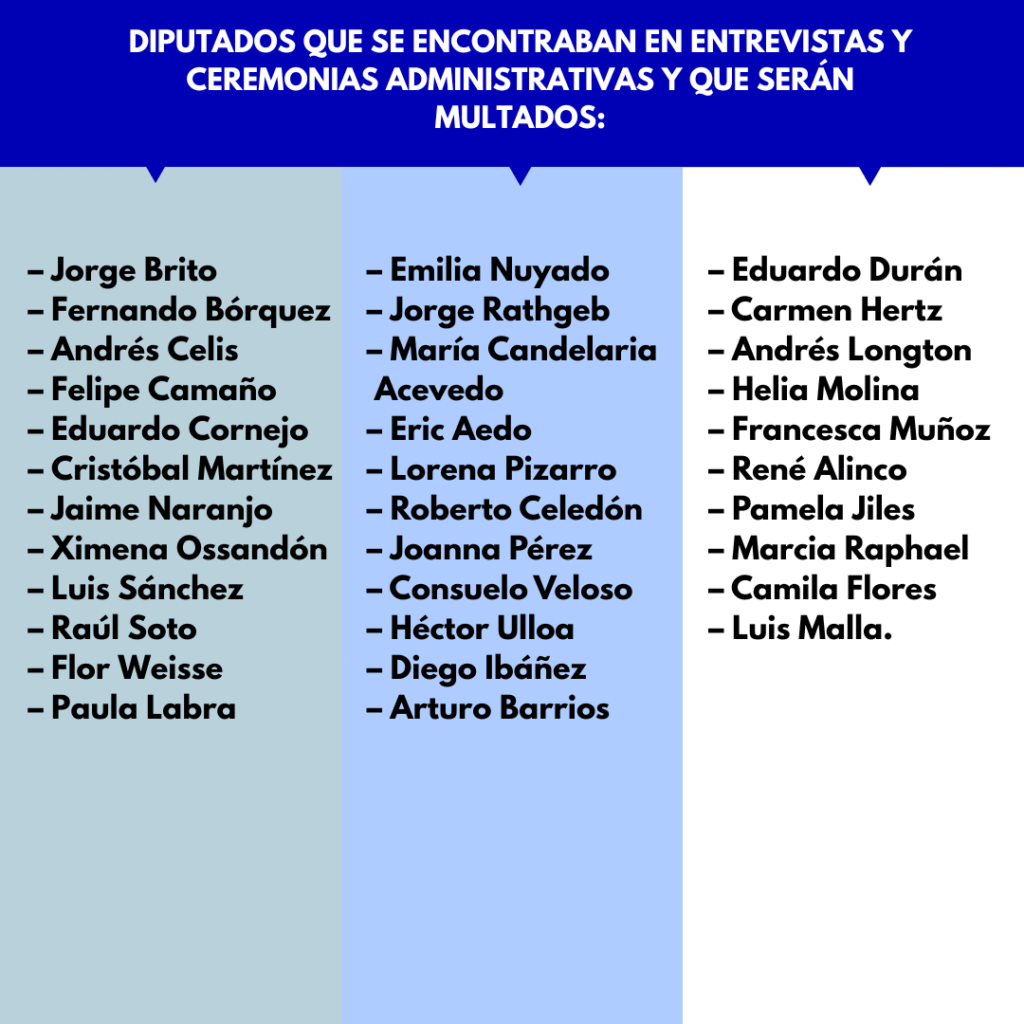 Diputados que se encontraban en entrevistas y ceremonias administrativas y que serán multados: